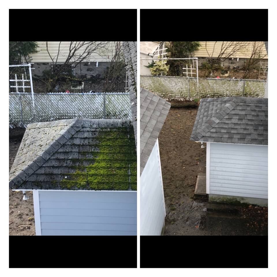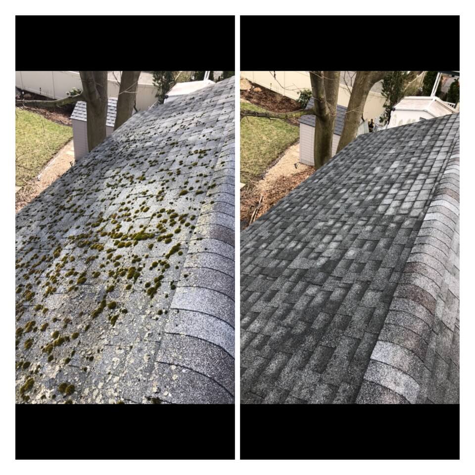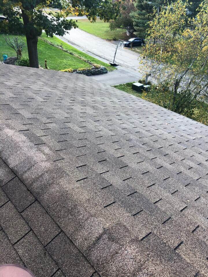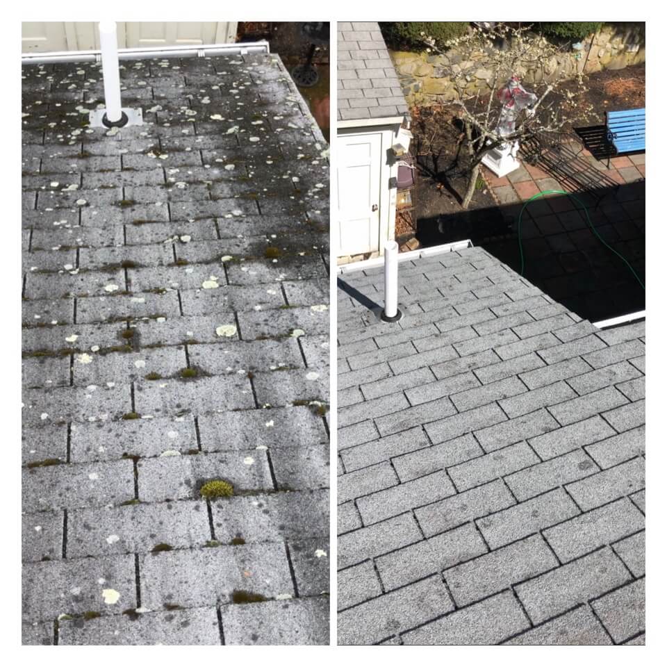 HiCleaners is the most experienced company in Marlborough, MA that deals with roof washing and roof soft washing. All of our employees are trained to recognize precise solution mixing ratios to provide you with the safest and most effective soft washing service. Roofs are a commonly neglected part of a house due to the fact that most people don’t have ladders to access it, so it is very easy to just leave it alone and forget about problems that may start to arise. Just like many home owners, discoloration and small bits of moss on a roof can be overlooked because of the misconception that it is just aesthetic. However, it isn’t just aesthetic, the moss slowly lifts the granules off the shingles which in turn shorten the life of the shingle. The moss also spreads, just like any bacteria if it is left alone for too long, it can quickly become a problem that spirals out of control. Call HiCleaners for a free quote, we only use the most advanced eco-friendly solutions and equipment to make sure the job is done right, for the safety of the employees, your plants, grass, pets, and children.